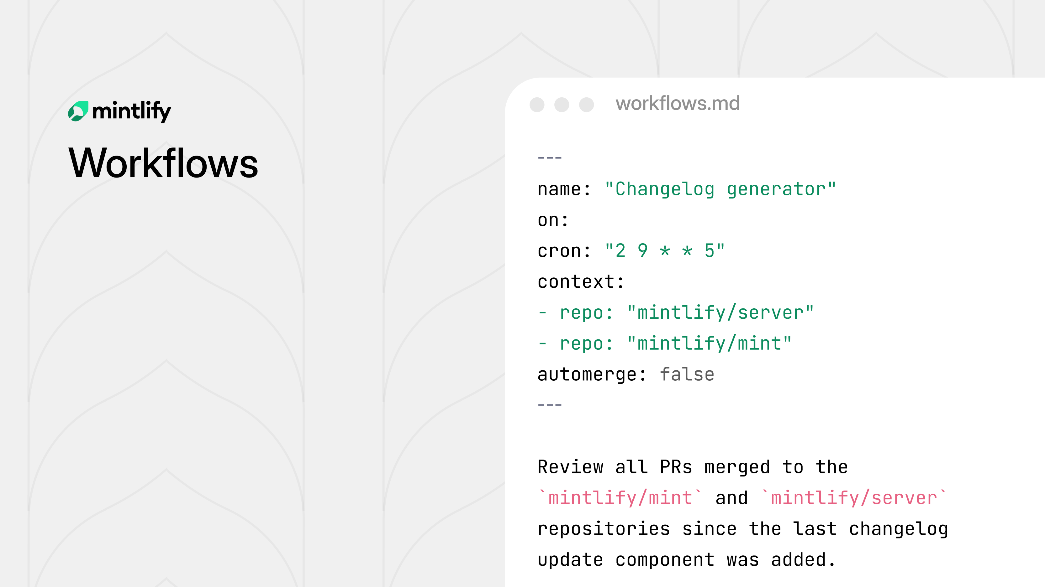 Mintlify's new Workflows feature fixes this. Define automation rules, and the agent handles the recurring maintenance work for you — on your schedule, by your rules.